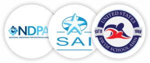 Water-Survival First. From the very first class, we teach survival techniques such as floating and finding the pool edge.